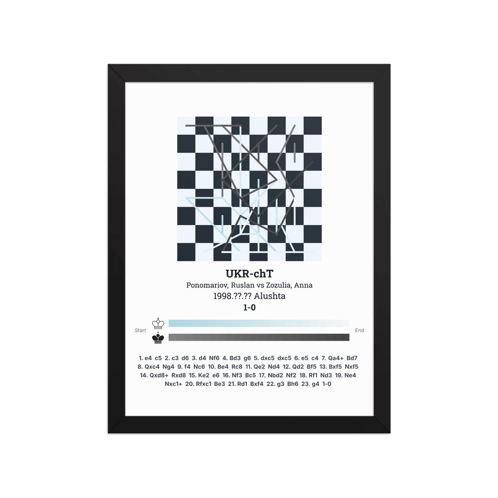 Museum-quality poster on thick, durable matte paper. A sharp, clean look for any chess visualisation.