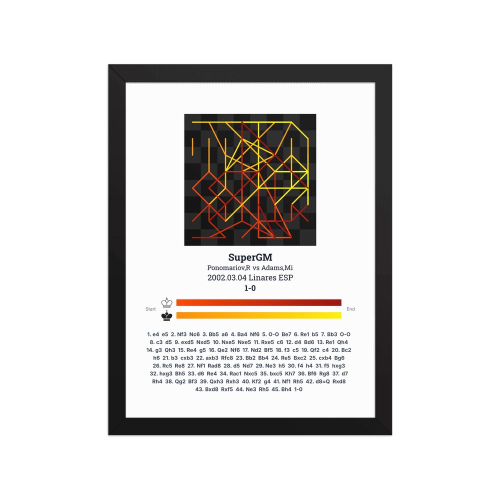 Museum-quality poster on thick, durable matte paper. A sharp, clean look for any chess visualisation.