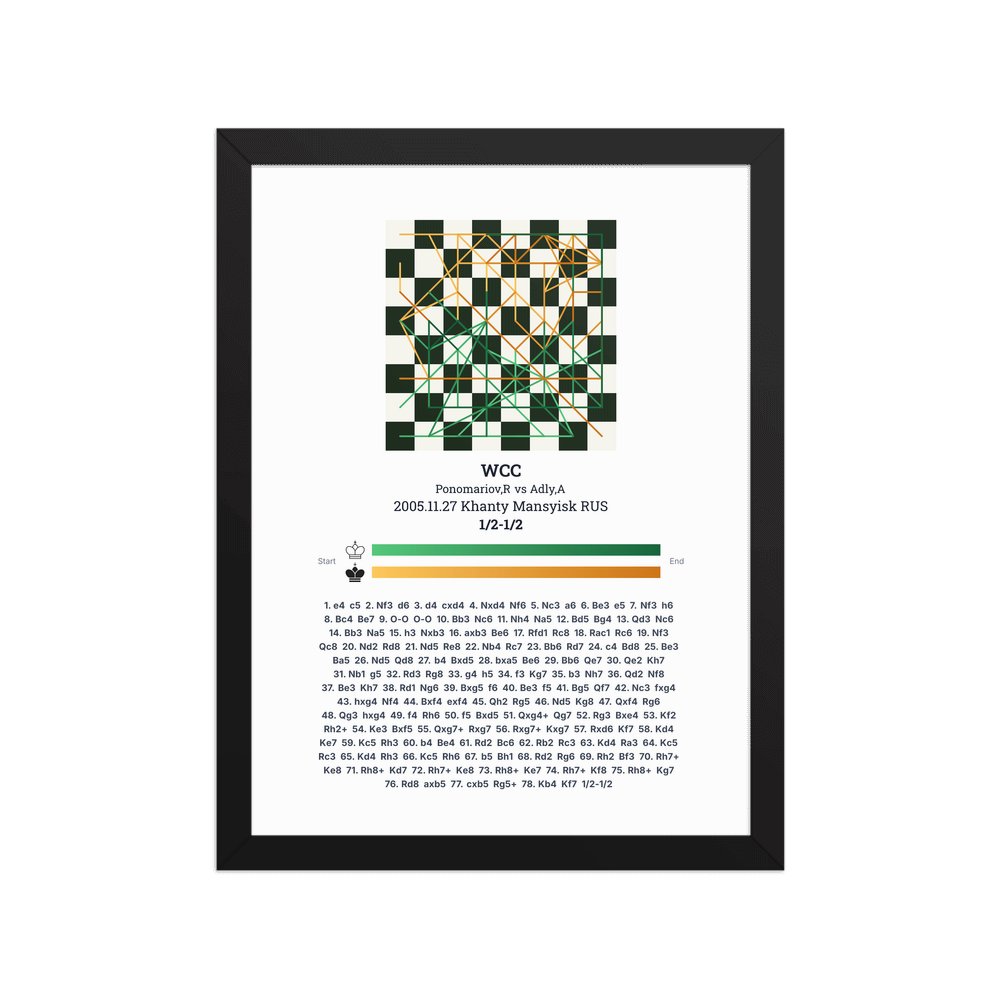 Museum-quality poster on thick, durable matte paper. A sharp, clean look for any chess visualisation.