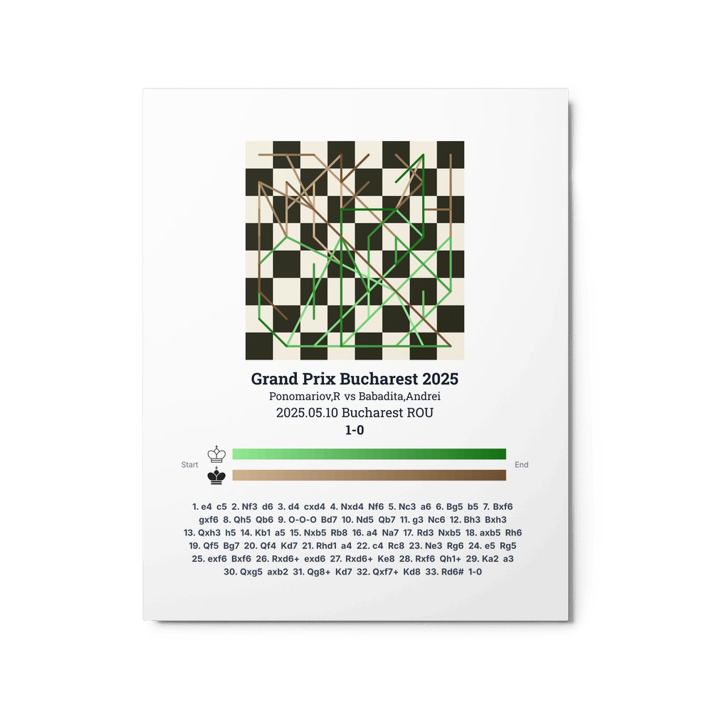 Museum-quality poster on thick, durable matte paper. A sharp, clean look for any chess visualisation.