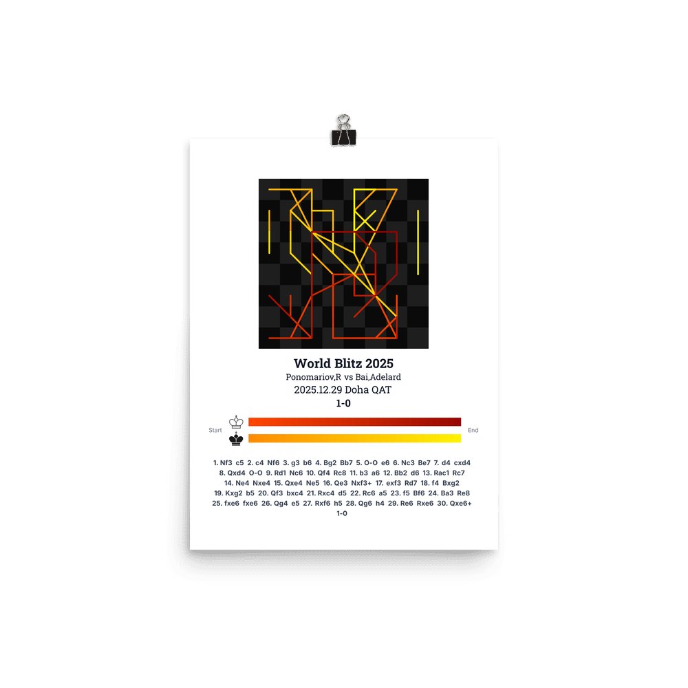 Museum-quality poster on thick, durable matte paper. A sharp, clean look for any chess visualisation.