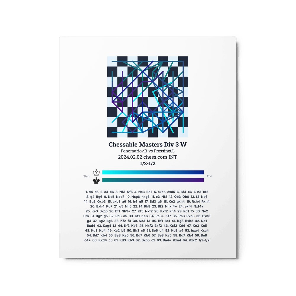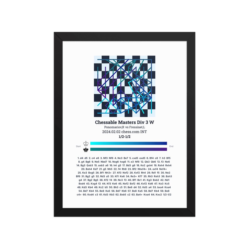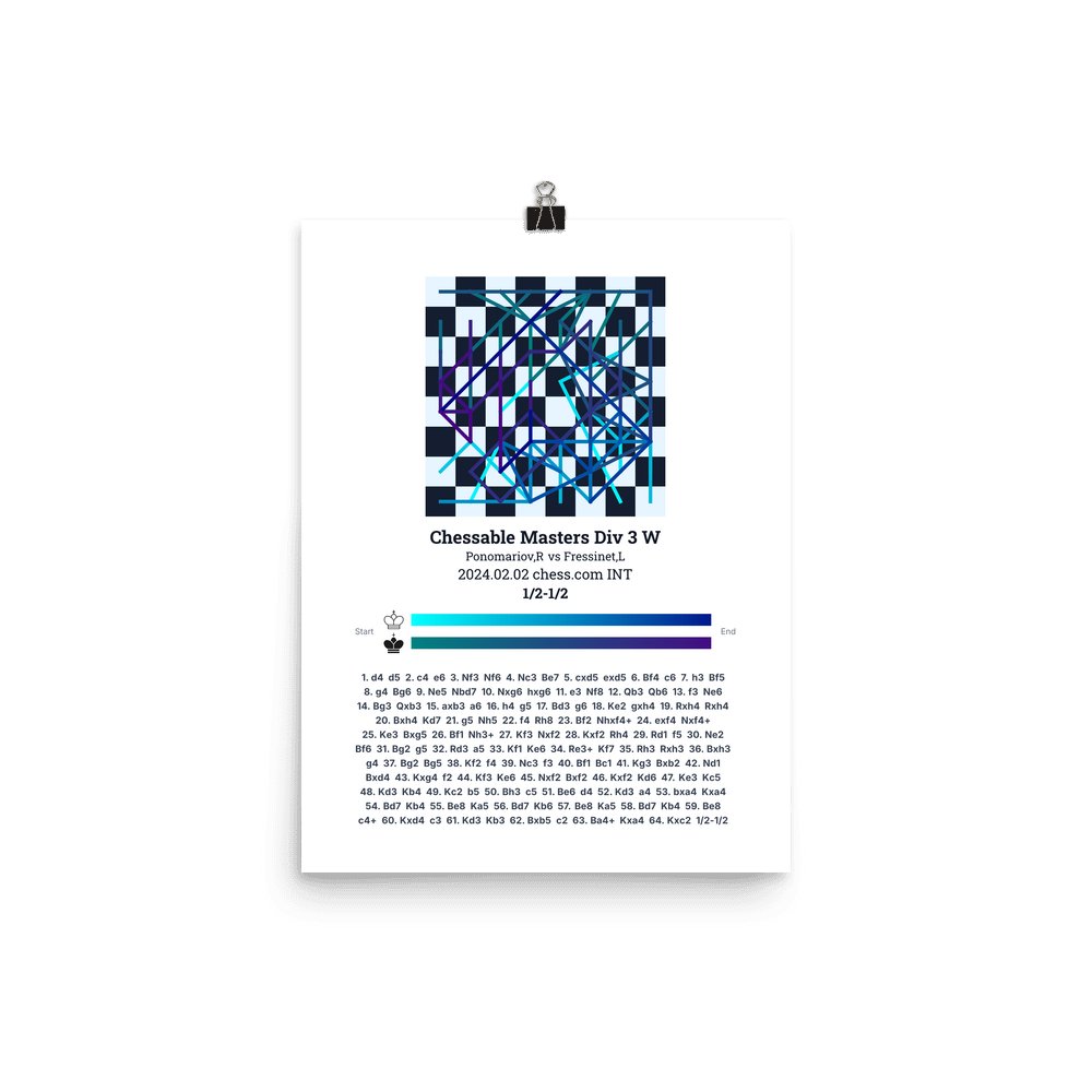 Museum-quality poster on thick, durable matte paper. A sharp, clean look for any chess visualisation.