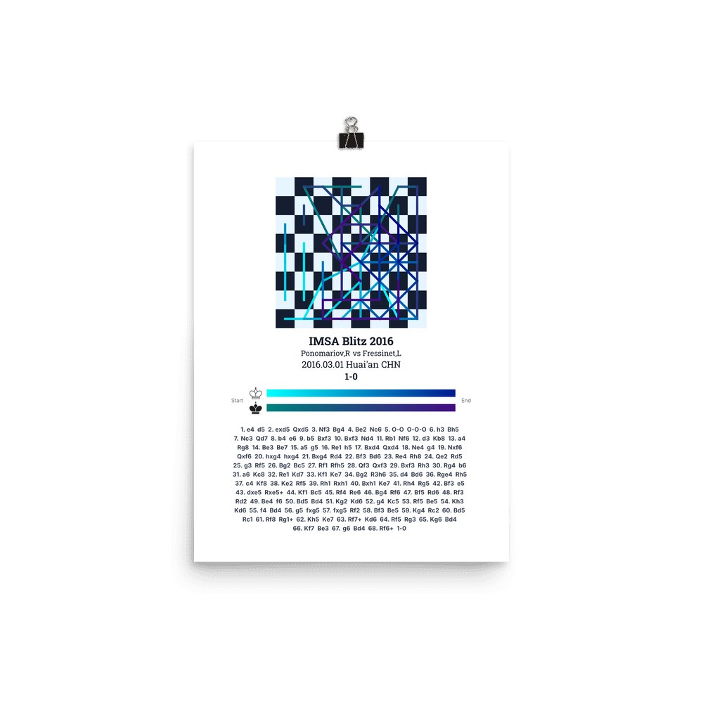 Museum-quality poster on thick, durable matte paper. A sharp, clean look for any chess visualisation.