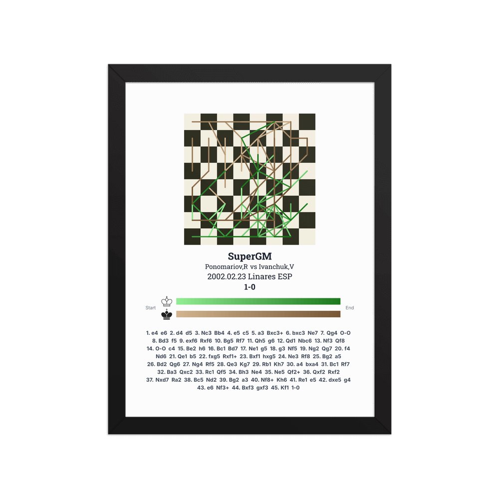 Museum-quality poster on thick, durable matte paper. A sharp, clean look for any chess visualisation.