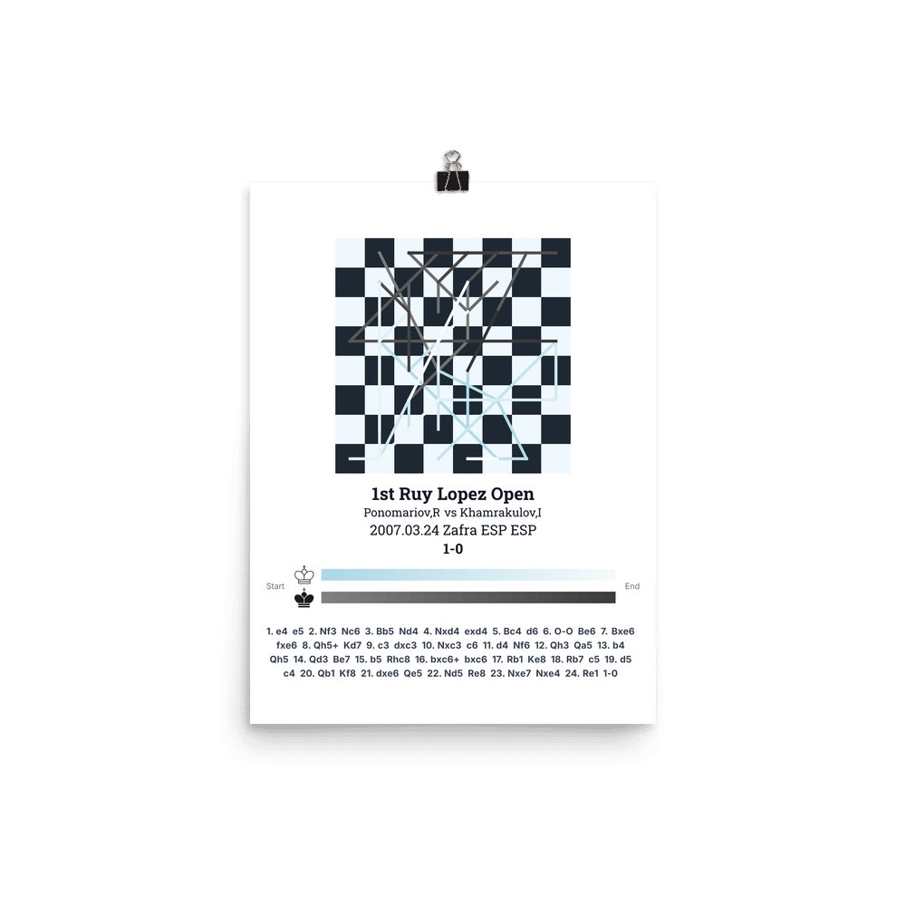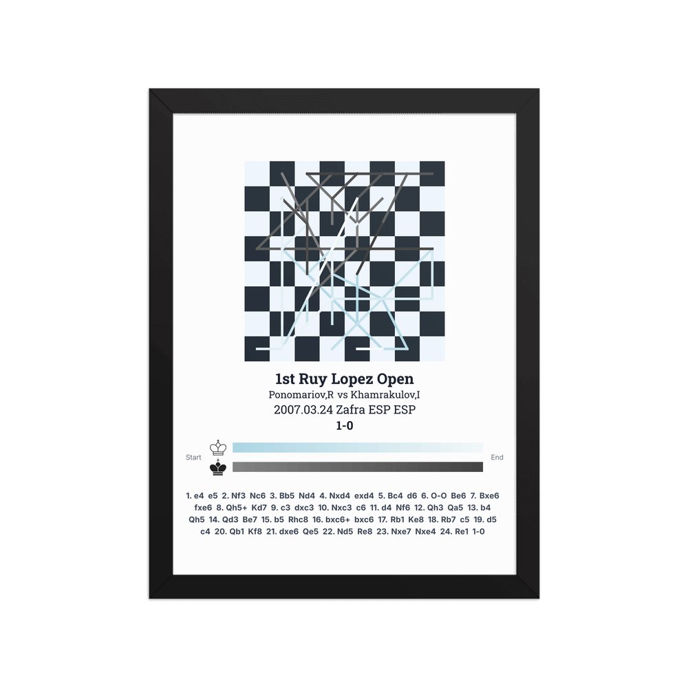 Museum-quality poster on thick, durable matte paper. A sharp, clean look for any chess visualisation.