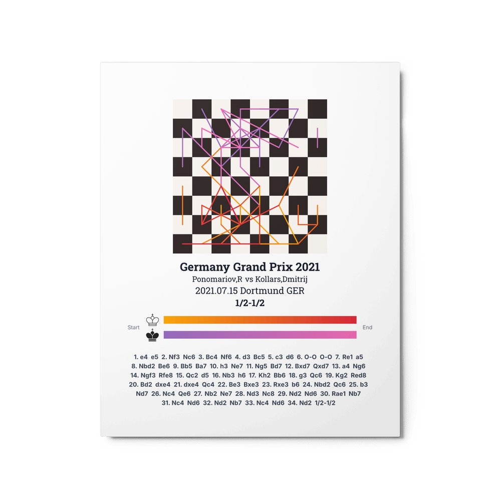 Museum-quality poster on thick, durable matte paper. A sharp, clean look for any chess visualisation.