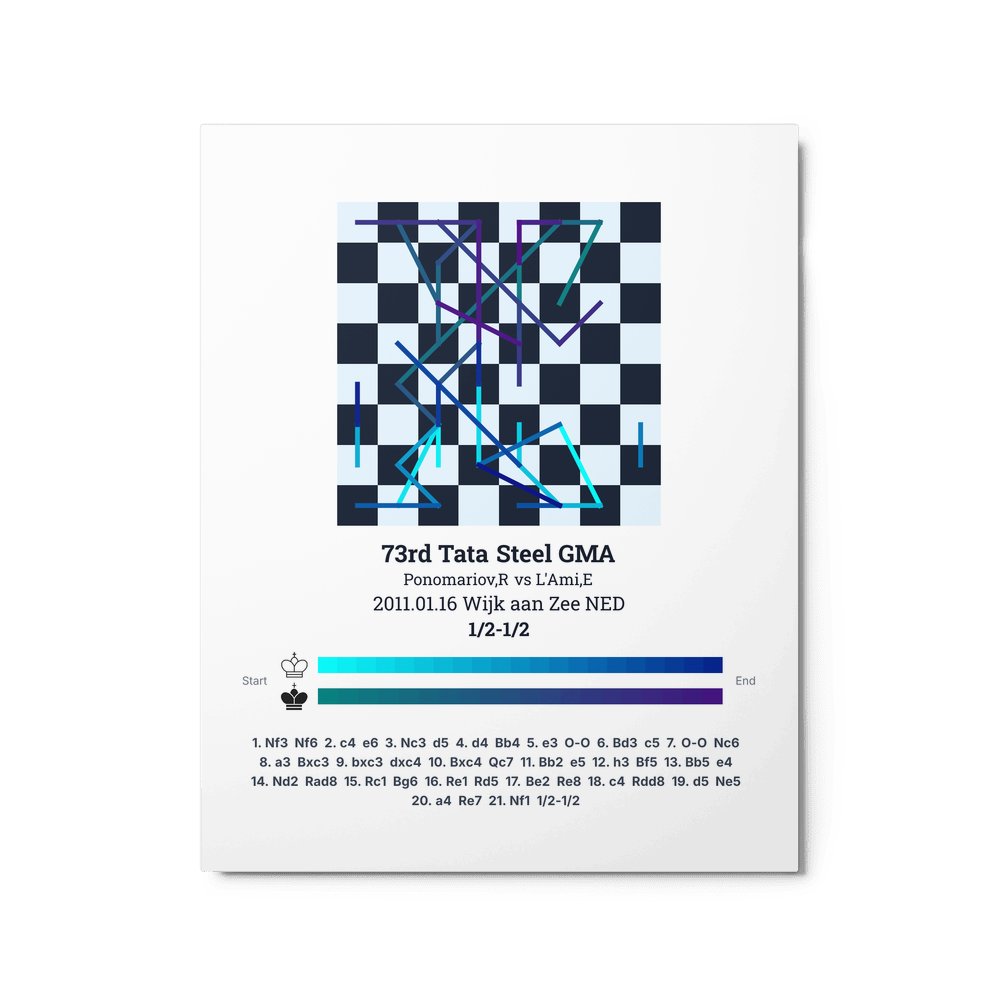 Museum-quality poster on thick, durable matte paper. A sharp, clean look for any chess visualisation.