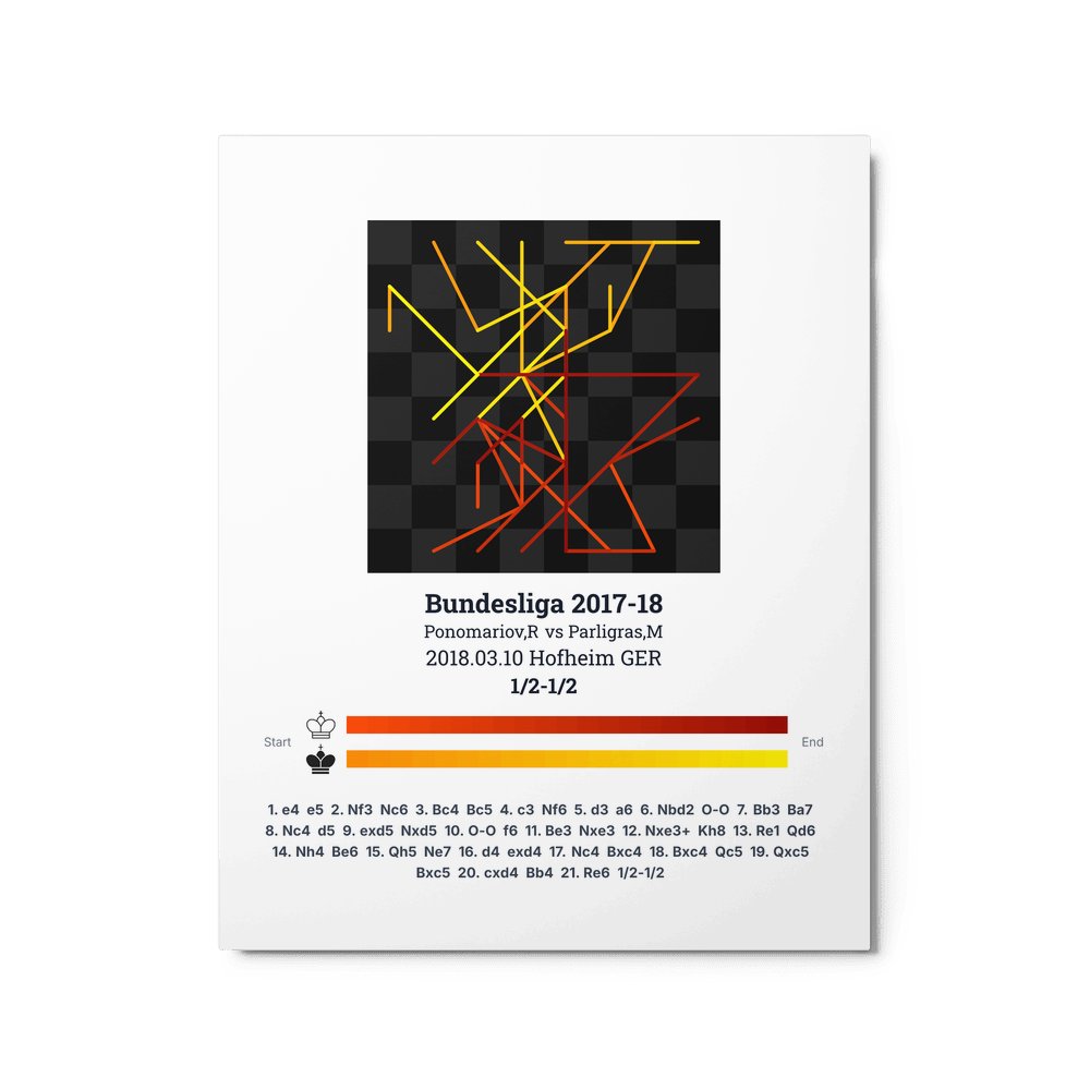 Museum-quality poster on thick, durable matte paper. A sharp, clean look for any chess visualisation.