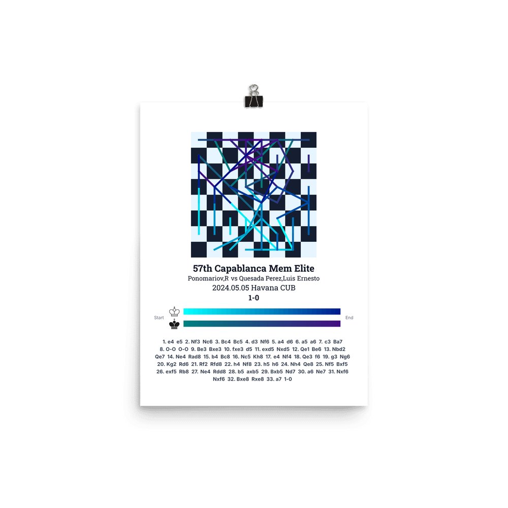 Museum-quality poster on thick, durable matte paper. A sharp, clean look for any chess visualisation.