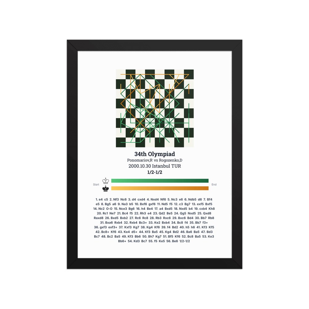 Museum-quality poster on thick, durable matte paper. A sharp, clean look for any chess visualisation.
