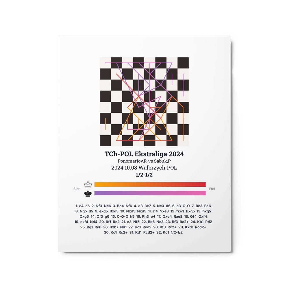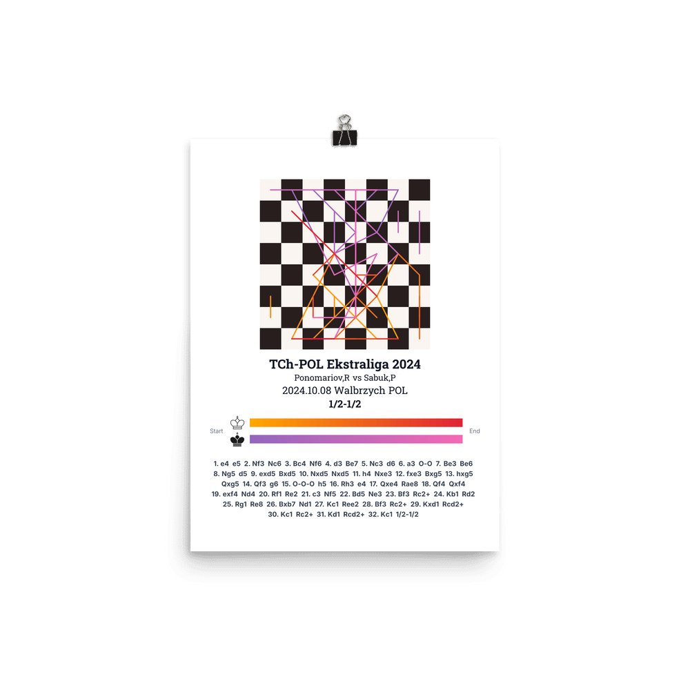 Museum-quality poster on thick, durable matte paper. A sharp, clean look for any chess visualisation.