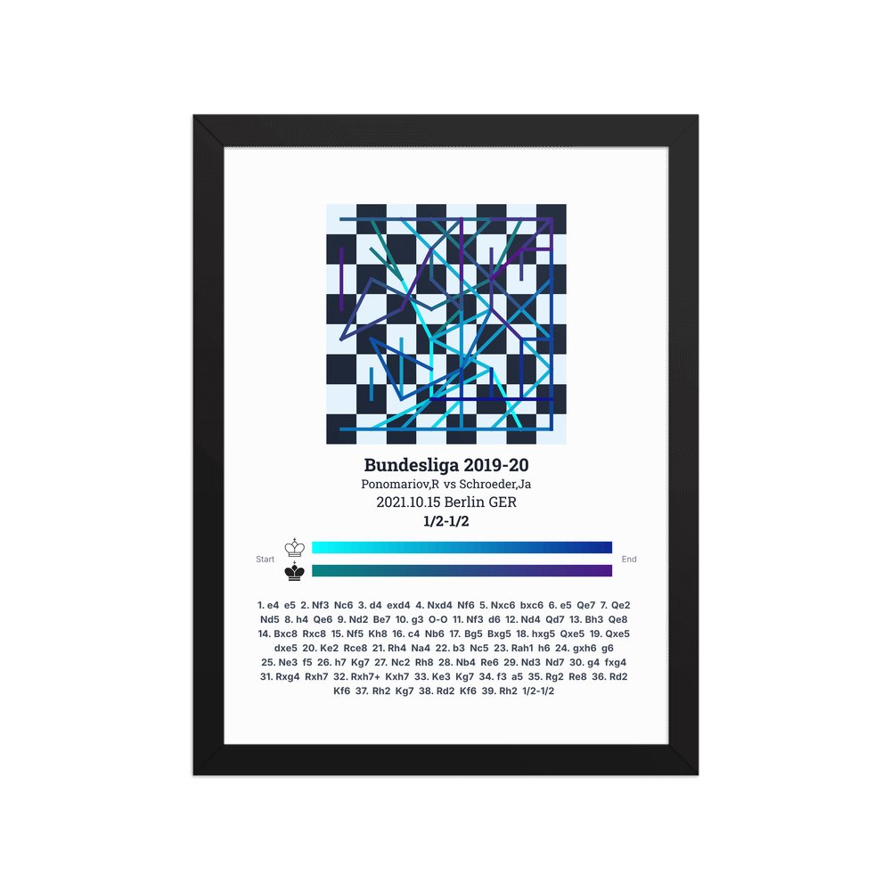 Museum-quality poster on thick, durable matte paper. A sharp, clean look for any chess visualisation.