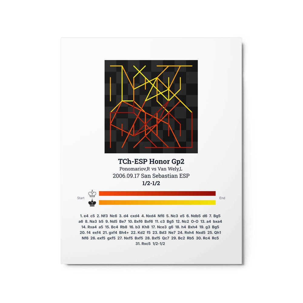 Museum-quality poster on thick, durable matte paper. A sharp, clean look for any chess visualisation.