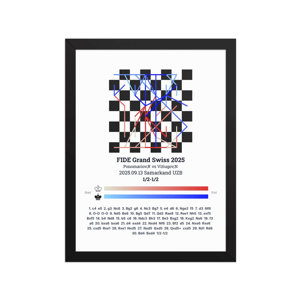 Museum-quality poster on thick, durable matte paper. A sharp, clean look for any chess visualisation.
