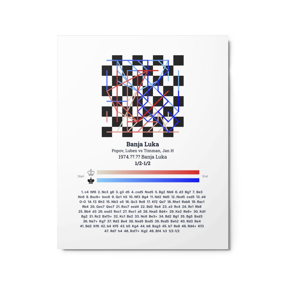 Museum-quality poster on thick, durable matte paper. A sharp, clean look for any chess visualisation.