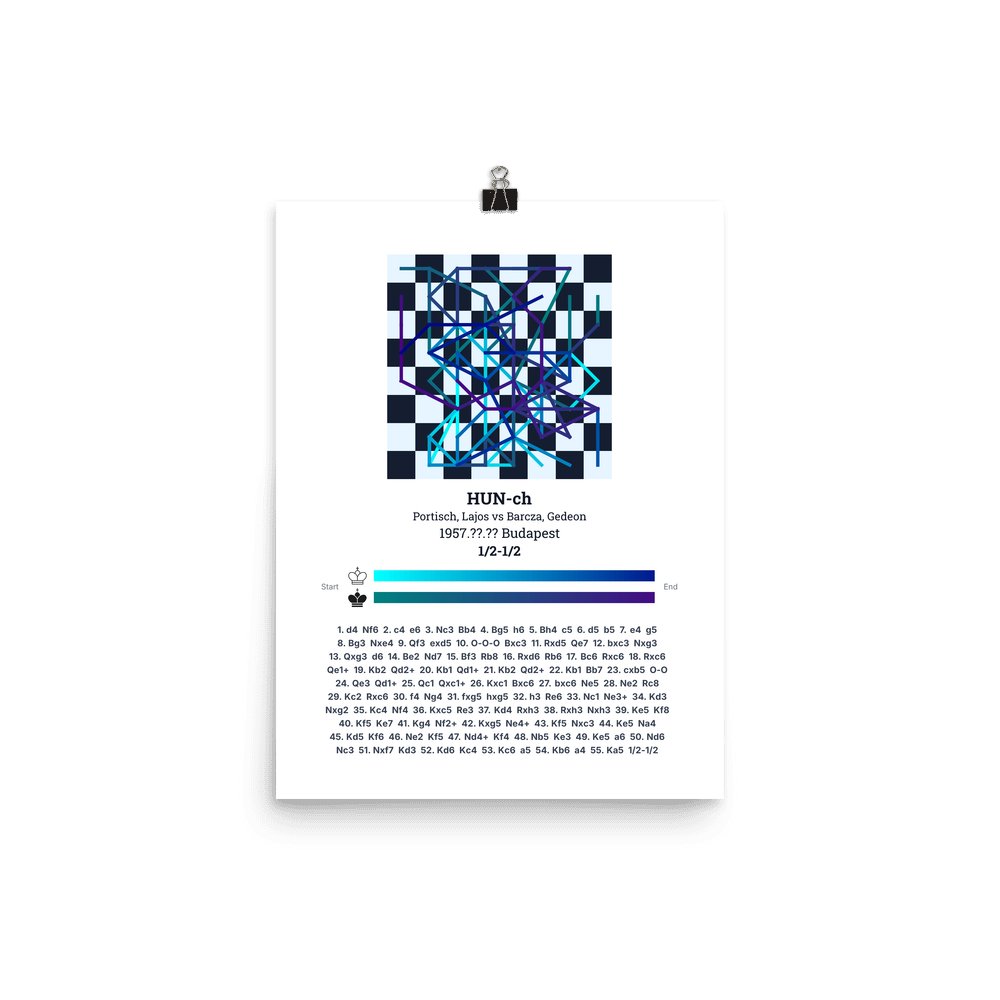 Museum-quality poster on thick, durable matte paper. A sharp, clean look for any chess visualisation.