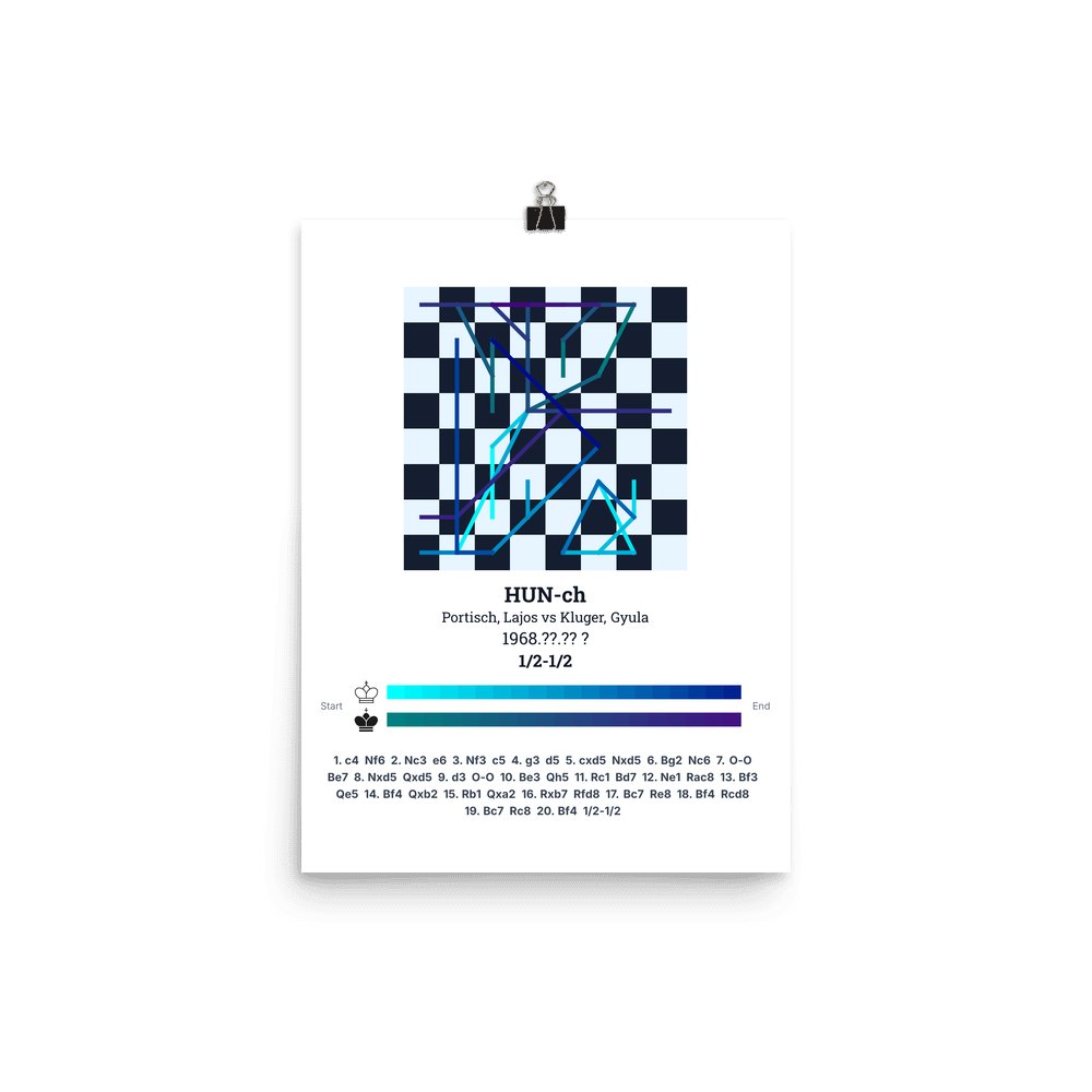 Museum-quality poster on thick, durable matte paper. A sharp, clean look for any chess visualisation.