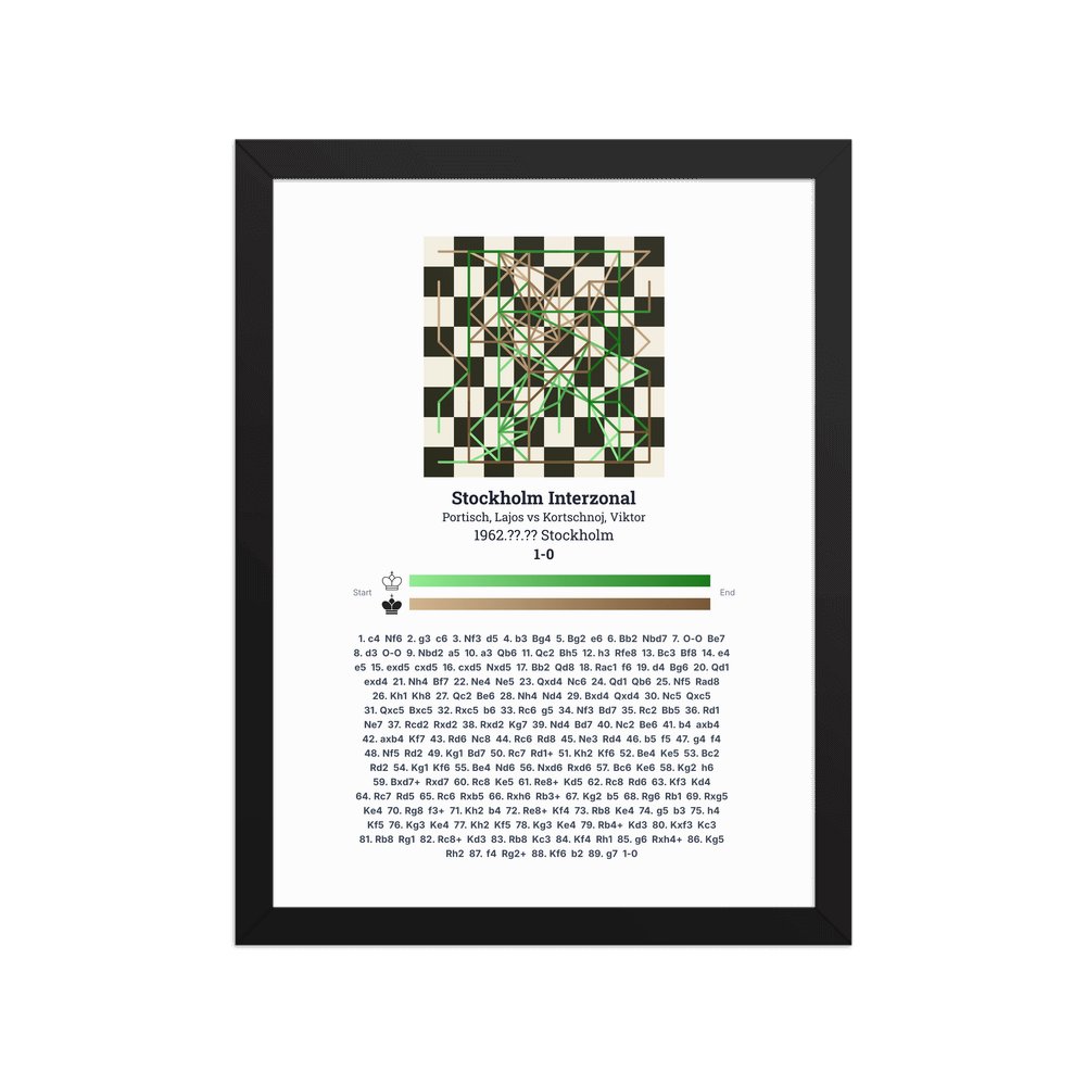 Museum-quality poster on thick, durable matte paper. A sharp, clean look for any chess visualisation.