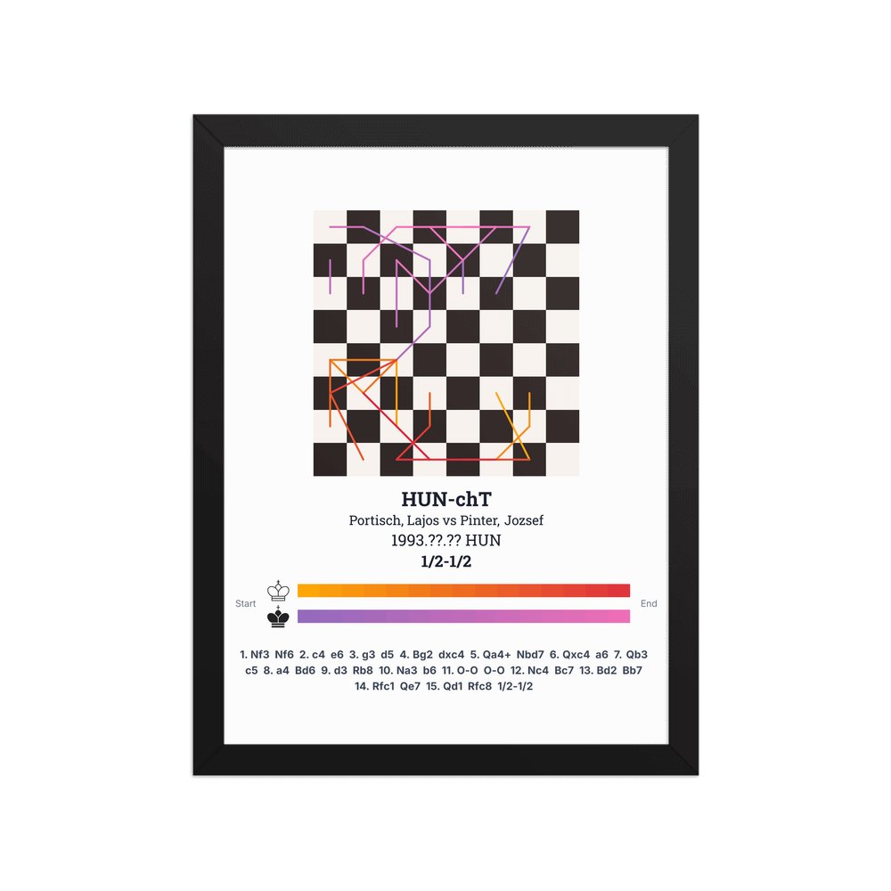 Museum-quality poster on thick, durable matte paper. A sharp, clean look for any chess visualisation.