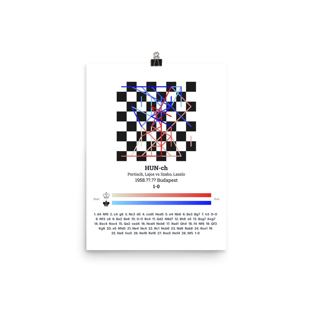 Museum-quality poster on thick, durable matte paper. A sharp, clean look for any chess visualisation.