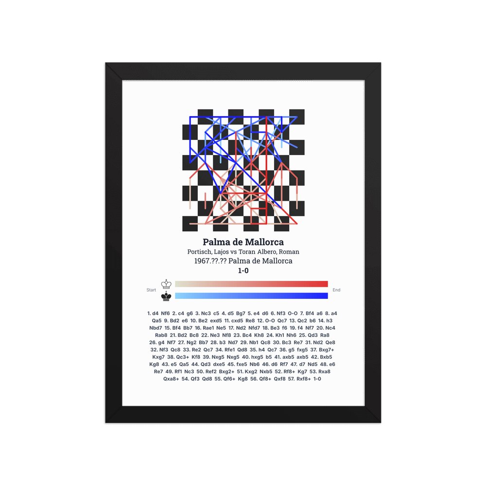 Museum-quality poster on thick, durable matte paper. A sharp, clean look for any chess visualisation.
