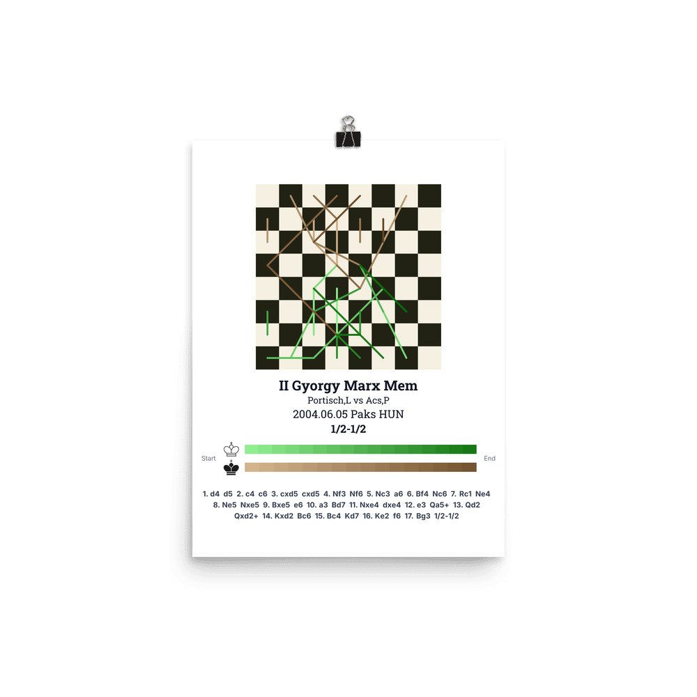 Museum-quality poster on thick, durable matte paper. A sharp, clean look for any chess visualisation.
