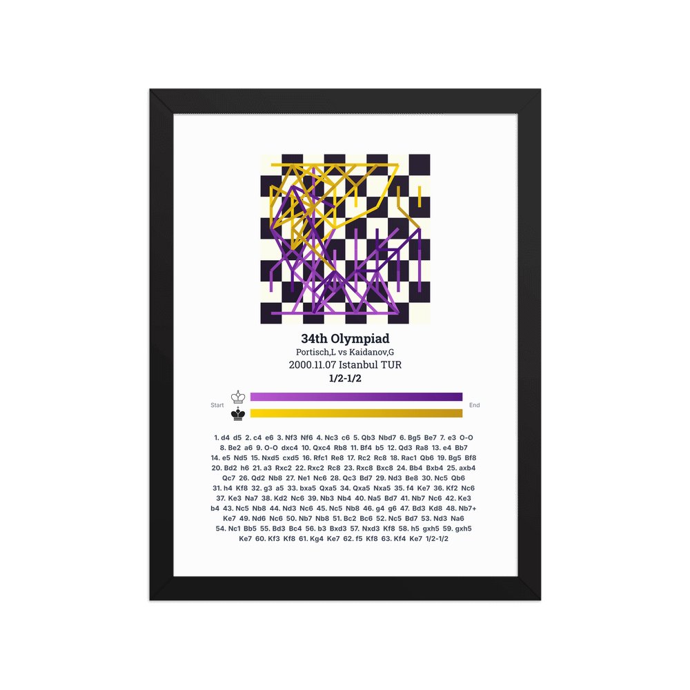 Museum-quality poster on thick, durable matte paper. A sharp, clean look for any chess visualisation.