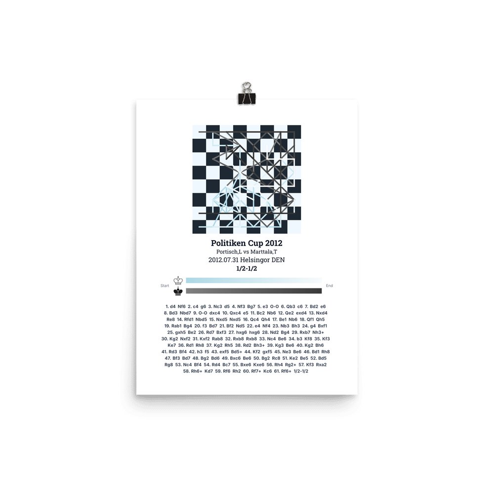 Museum-quality poster on thick, durable matte paper. A sharp, clean look for any chess visualisation.