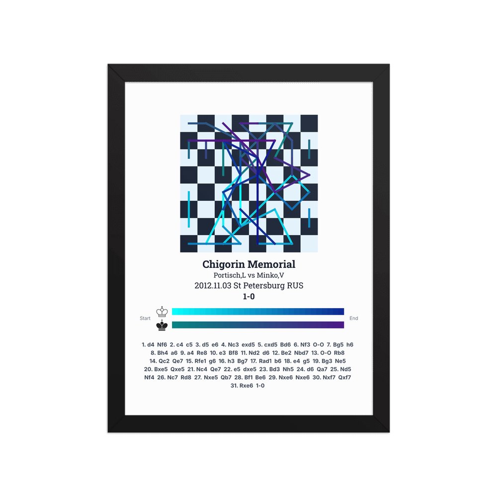 Museum-quality poster on thick, durable matte paper. A sharp, clean look for any chess visualisation.