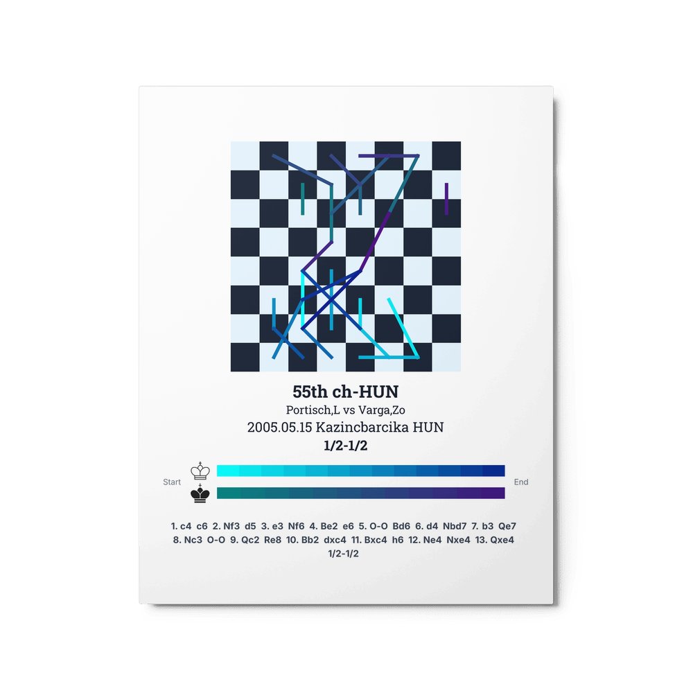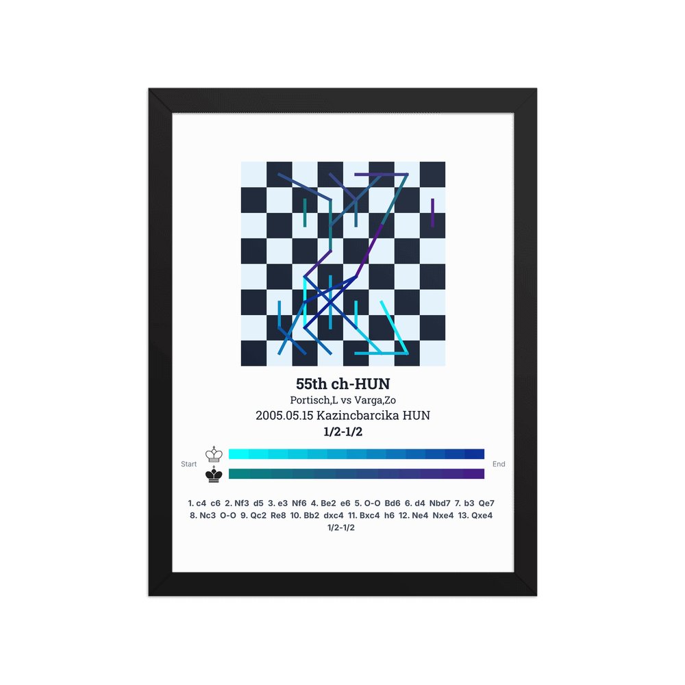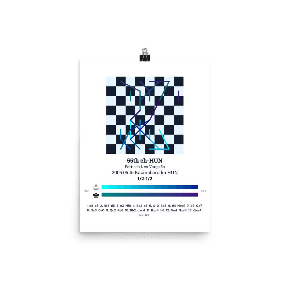 Museum-quality poster on thick, durable matte paper. A sharp, clean look for any chess visualisation.