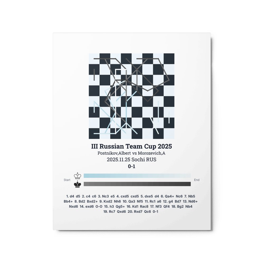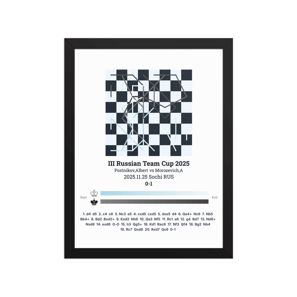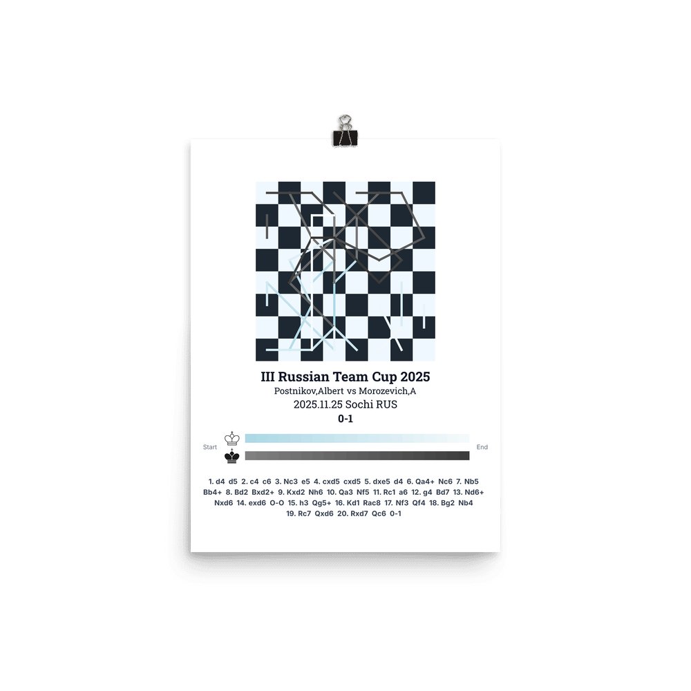 Museum-quality poster on thick, durable matte paper. A sharp, clean look for any chess visualisation.