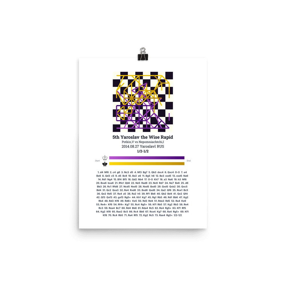 Museum-quality poster on thick, durable matte paper. A sharp, clean look for any chess visualisation.