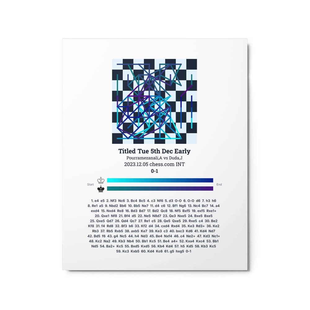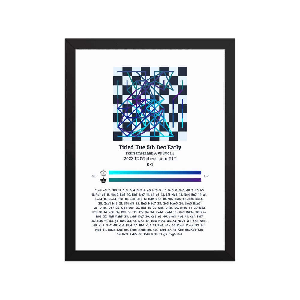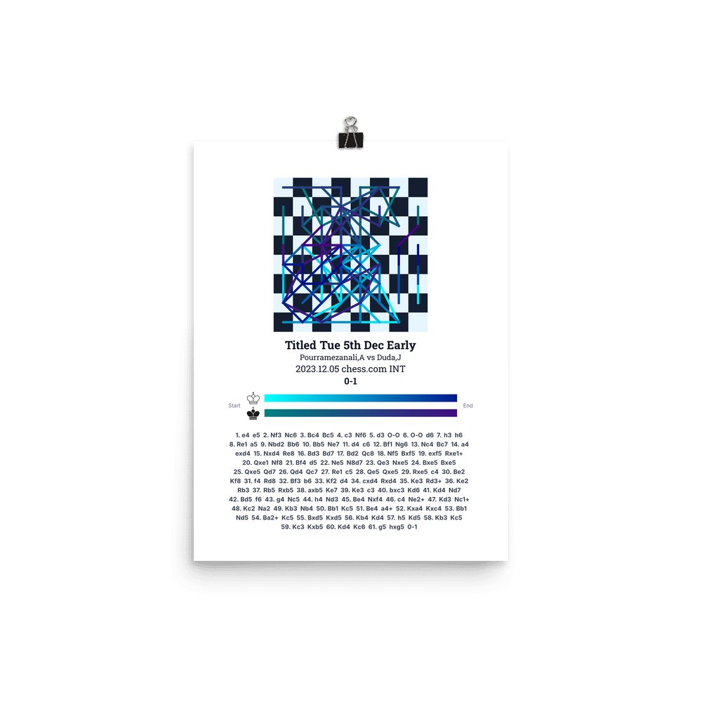 Museum-quality poster on thick, durable matte paper. A sharp, clean look for any chess visualisation.