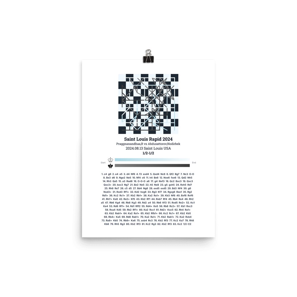 Museum-quality poster on thick, durable matte paper. A sharp, clean look for any chess visualisation.