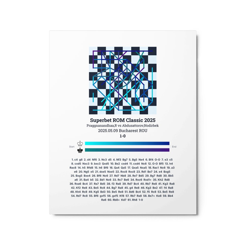 Museum-quality poster on thick, durable matte paper. A sharp, clean look for any chess visualisation.