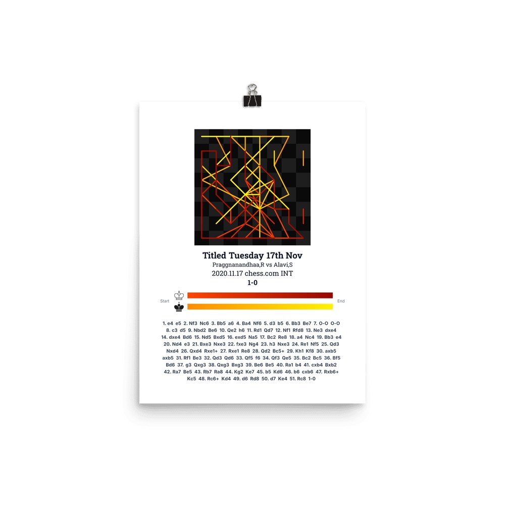 Museum-quality poster on thick, durable matte paper. A sharp, clean look for any chess visualisation.