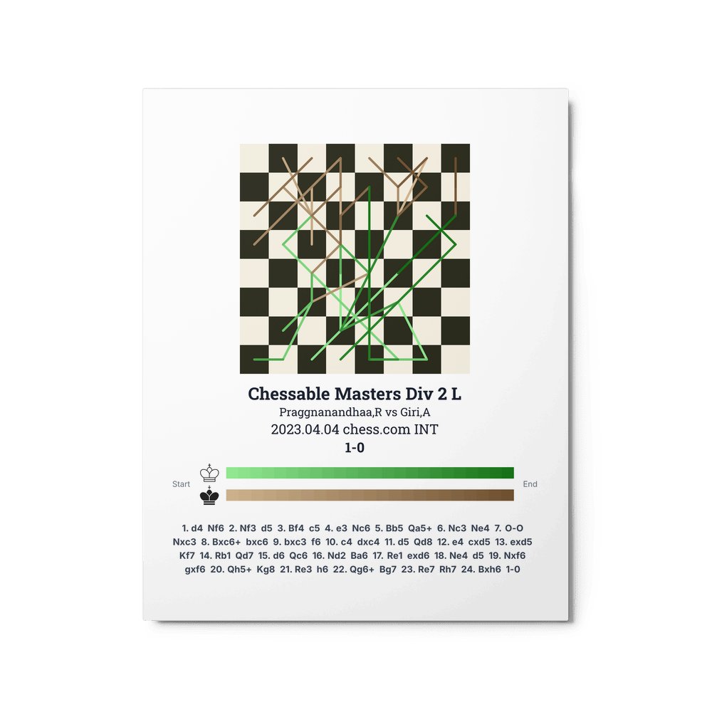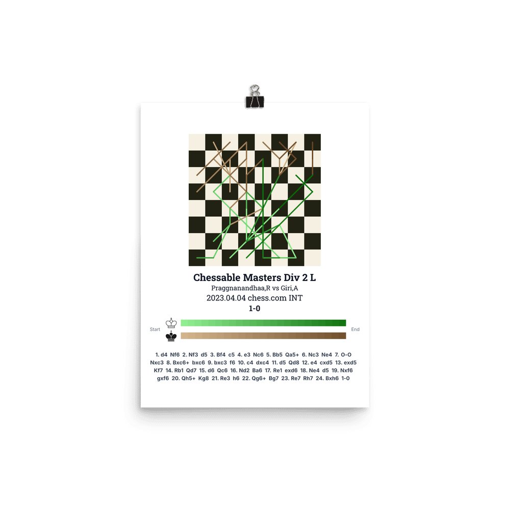 Museum-quality poster on thick, durable matte paper. A sharp, clean look for any chess visualisation.