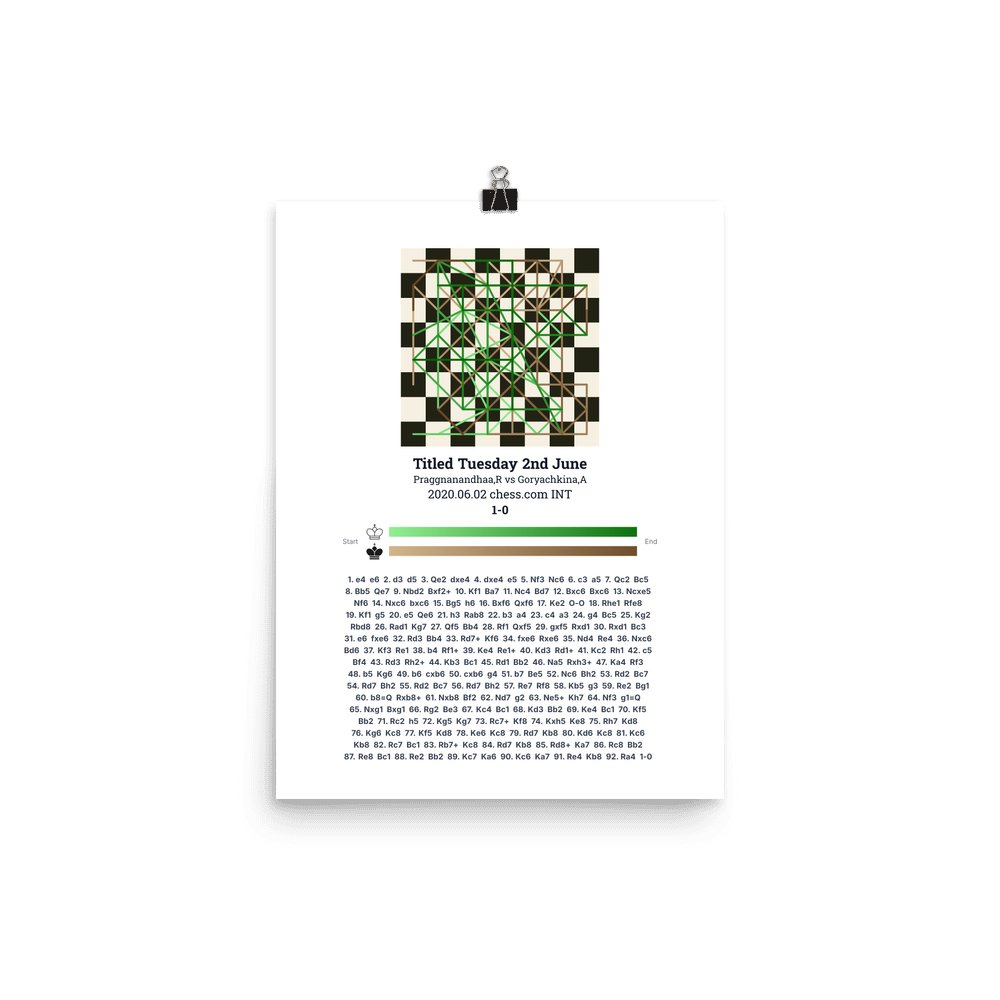 Museum-quality poster on thick, durable matte paper. A sharp, clean look for any chess visualisation.