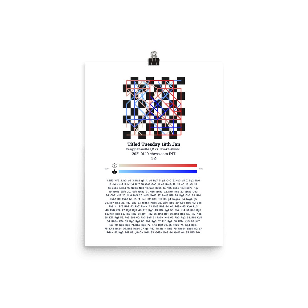 Museum-quality poster on thick, durable matte paper. A sharp, clean look for any chess visualisation.