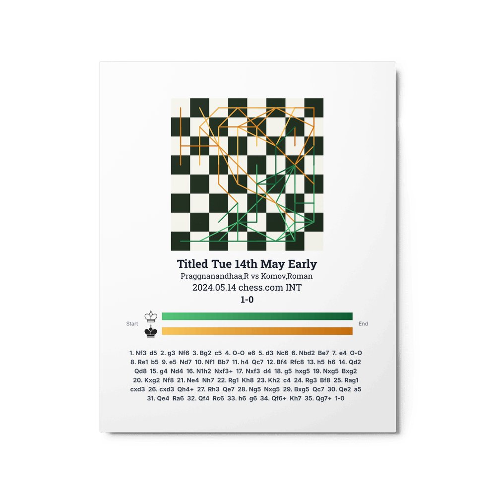 Museum-quality poster on thick, durable matte paper. A sharp, clean look for any chess visualisation.
