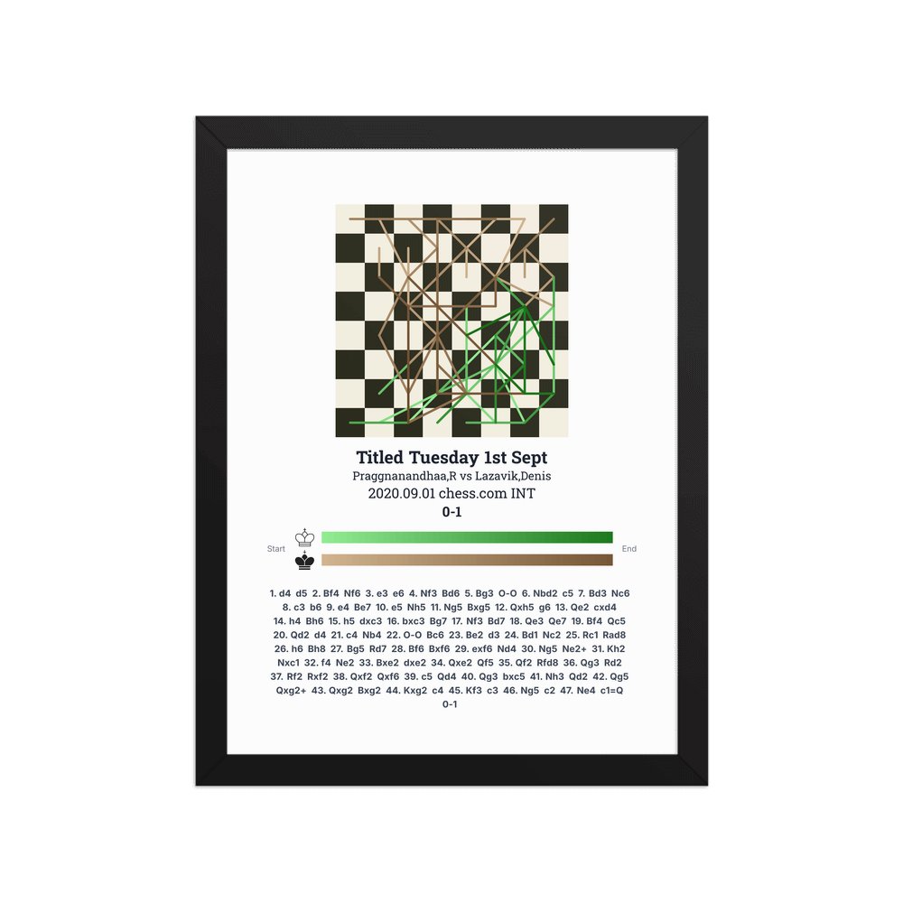 Museum-quality poster on thick, durable matte paper. A sharp, clean look for any chess visualisation.