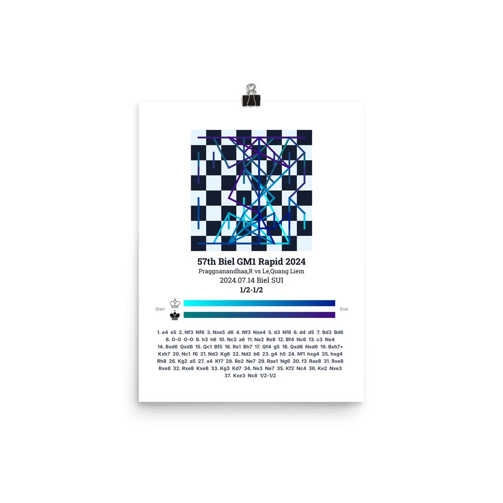 Museum-quality poster on thick, durable matte paper. A sharp, clean look for any chess visualisation.