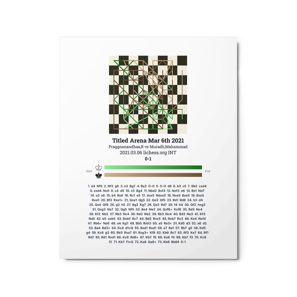 Museum-quality poster on thick, durable matte paper. A sharp, clean look for any chess visualisation.