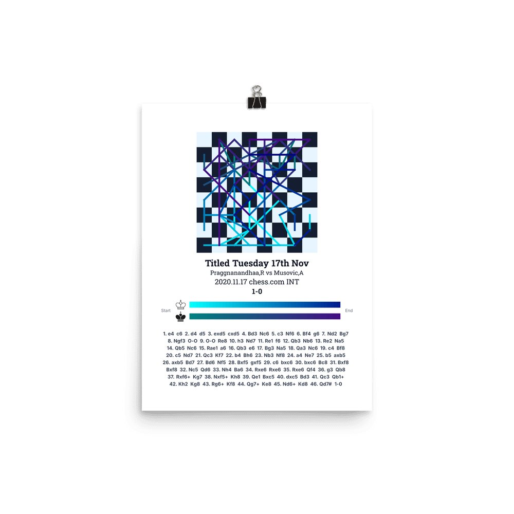 Museum-quality poster on thick, durable matte paper. A sharp, clean look for any chess visualisation.