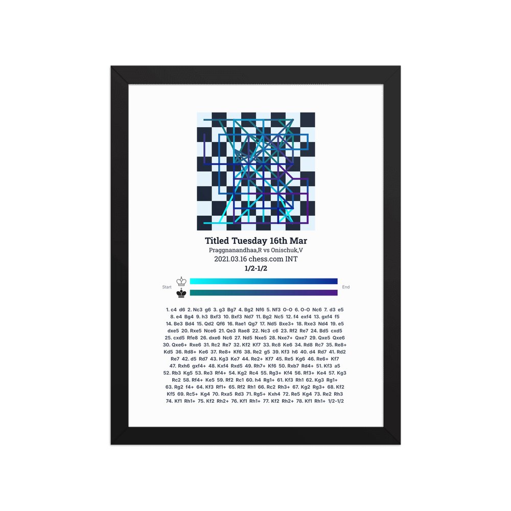 Museum-quality poster on thick, durable matte paper. A sharp, clean look for any chess visualisation.