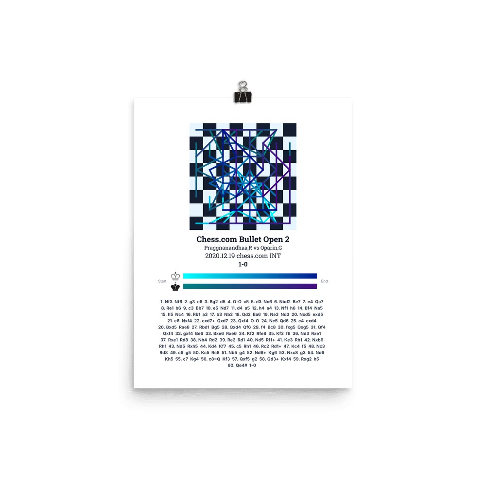 Museum-quality poster on thick, durable matte paper. A sharp, clean look for any chess visualisation.