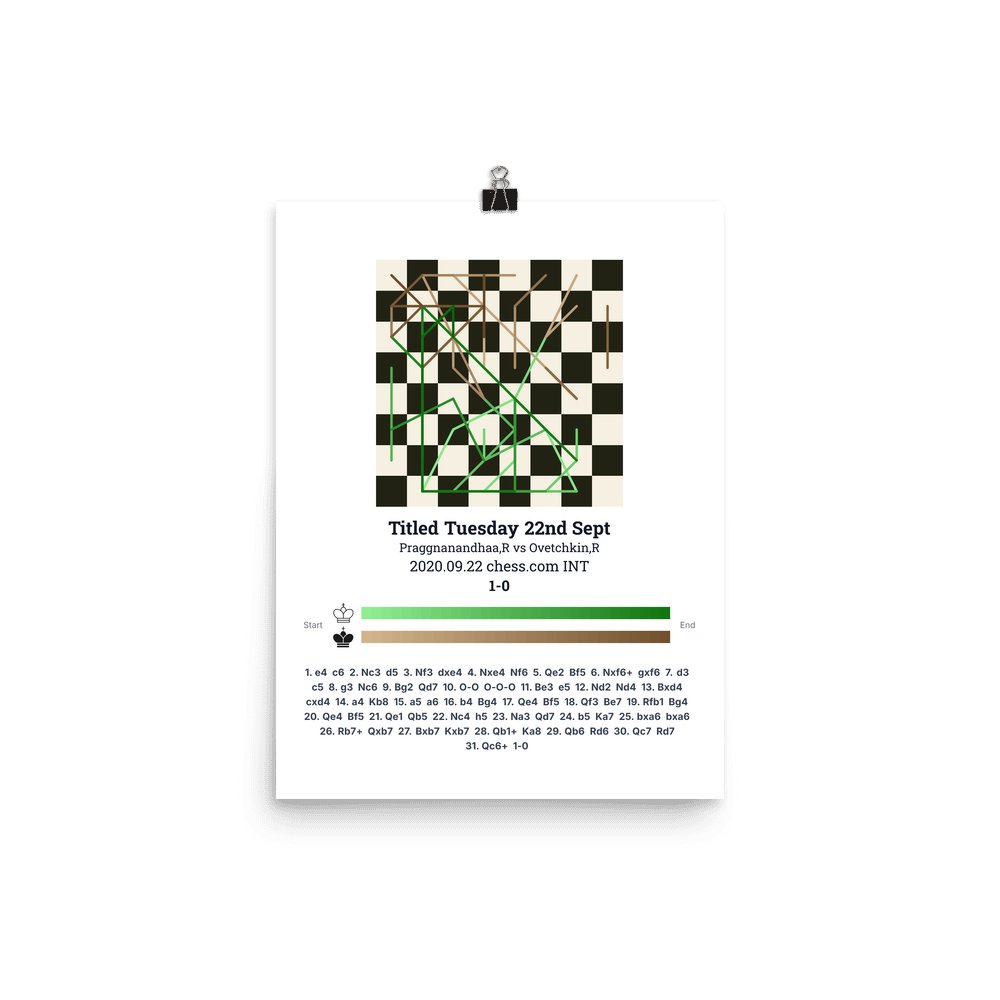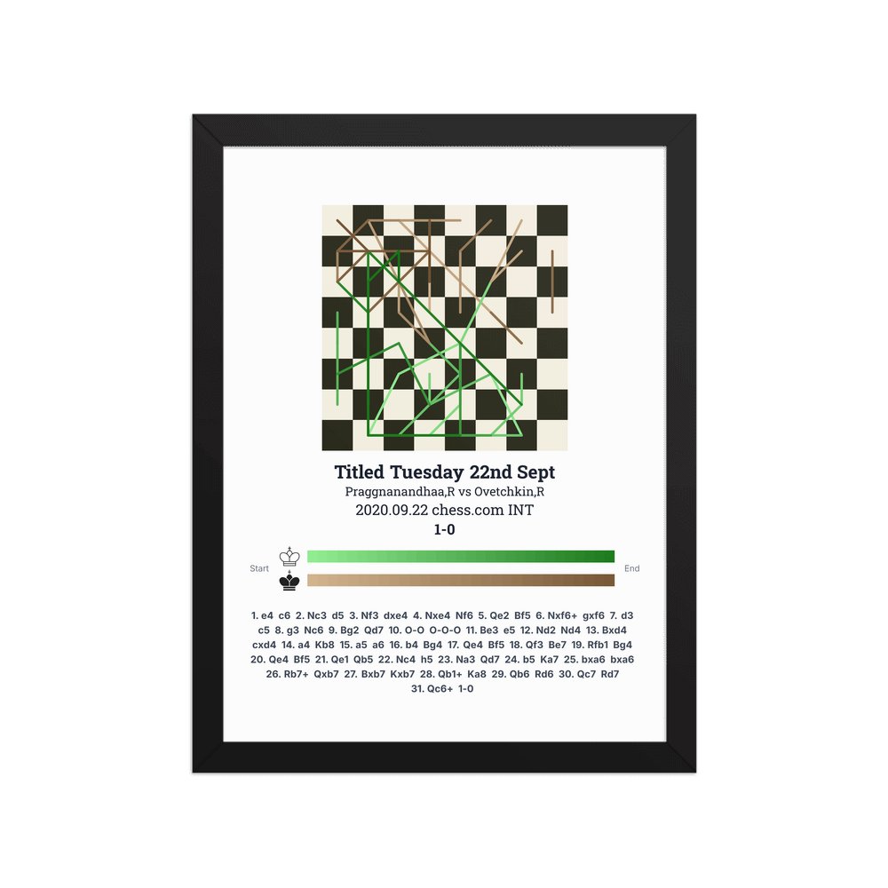 Museum-quality poster on thick, durable matte paper. A sharp, clean look for any chess visualisation.