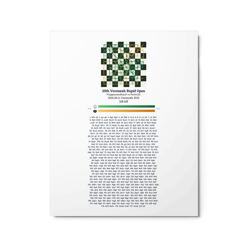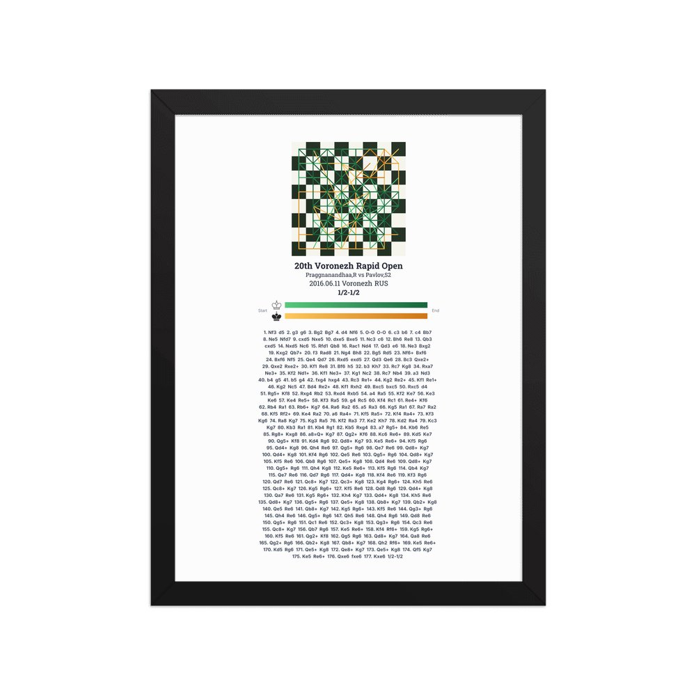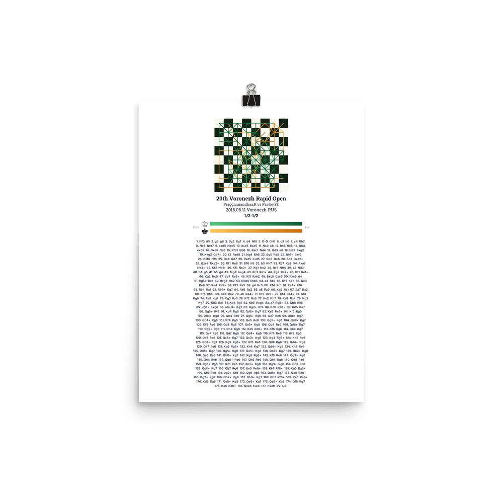 Museum-quality poster on thick, durable matte paper. A sharp, clean look for any chess visualisation.