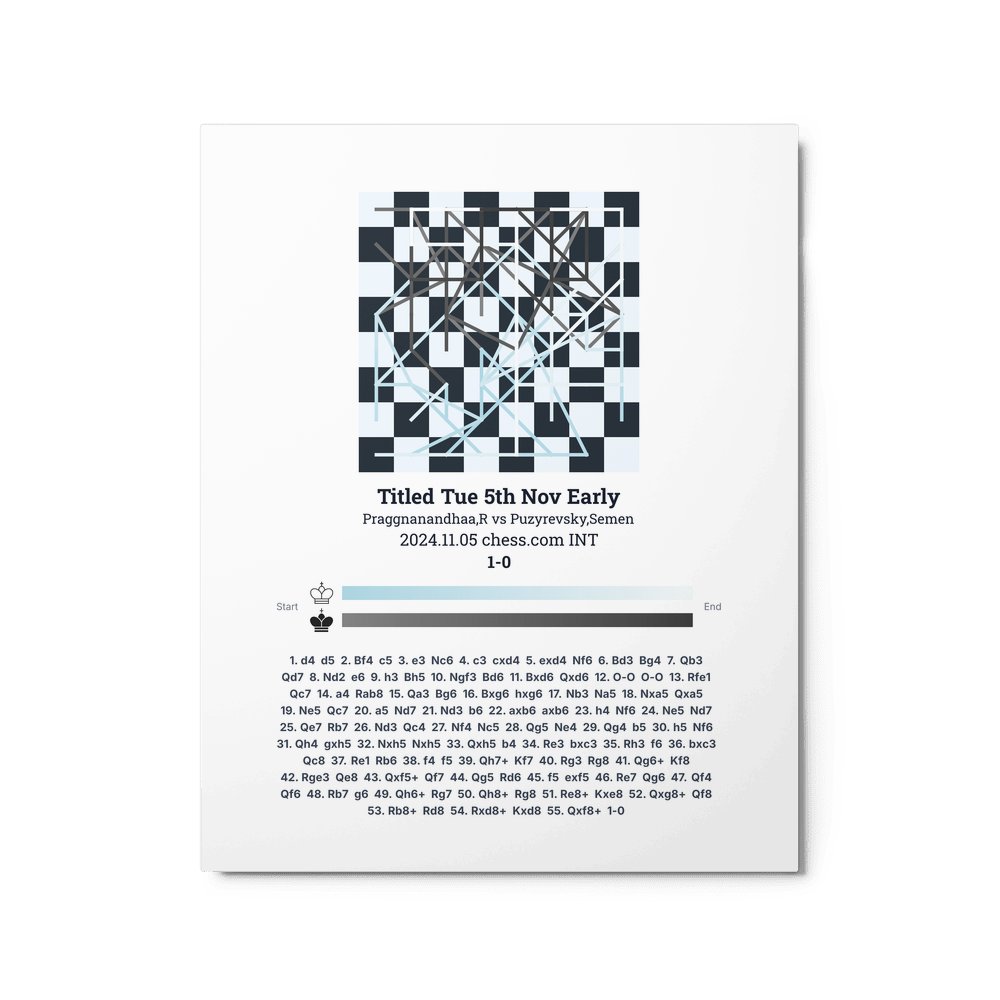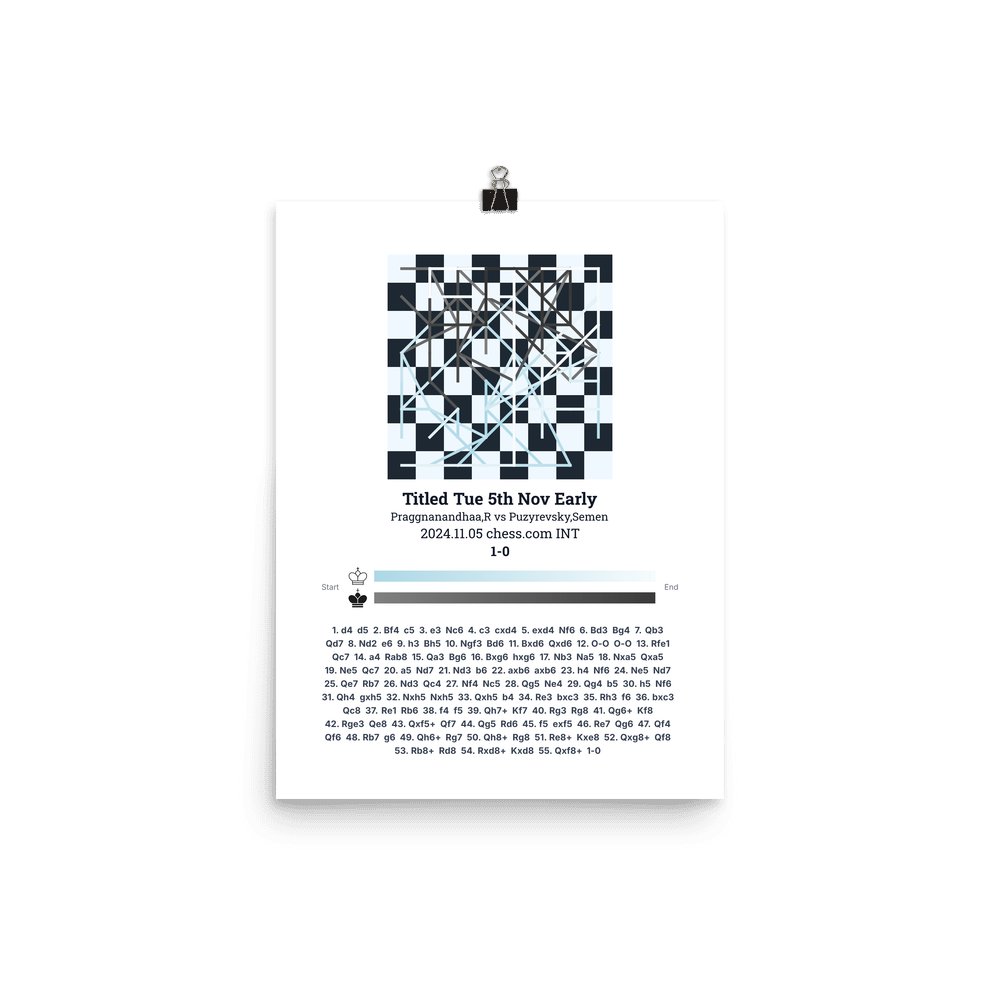 Museum-quality poster on thick, durable matte paper. A sharp, clean look for any chess visualisation.
