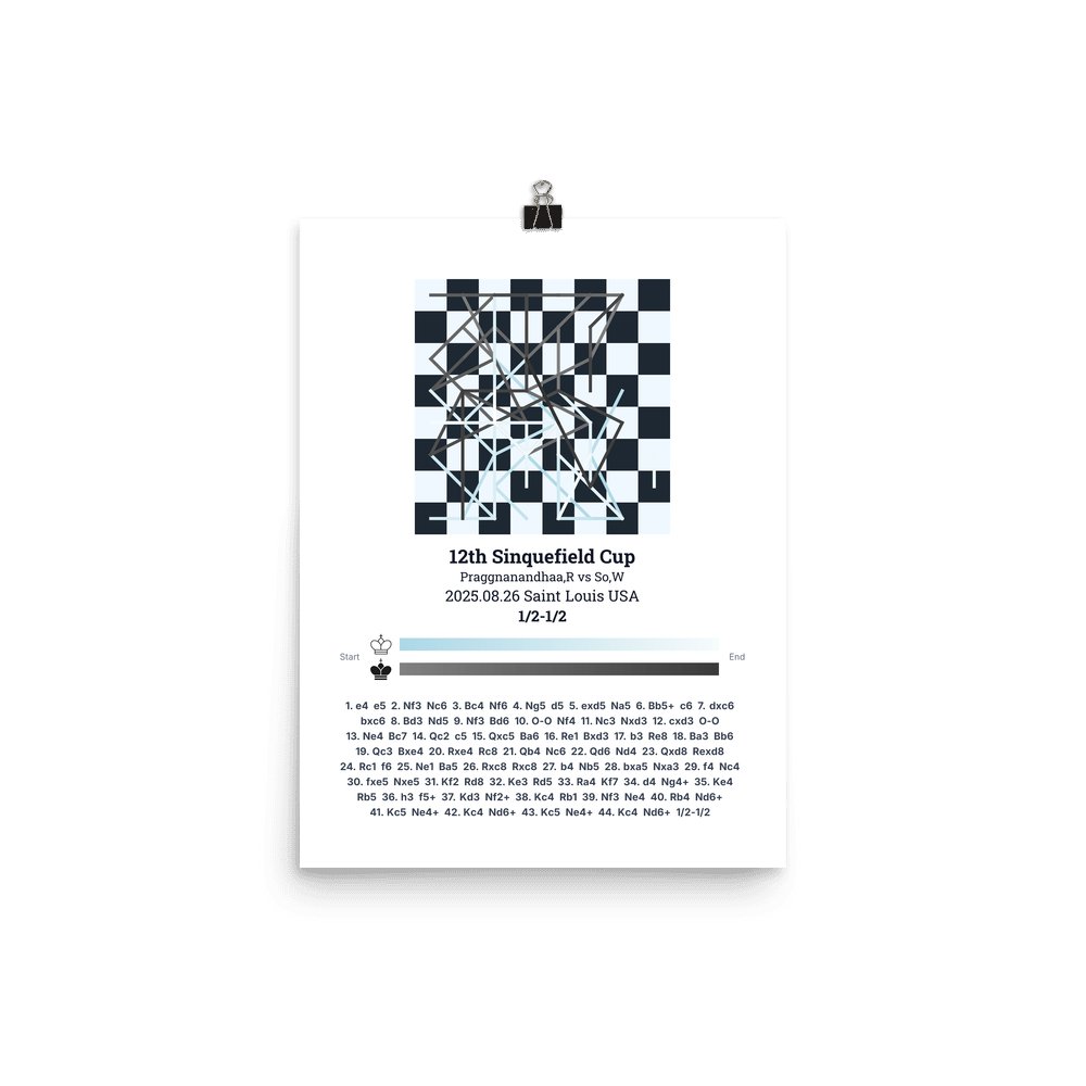 Museum-quality poster on thick, durable matte paper. A sharp, clean look for any chess visualisation.